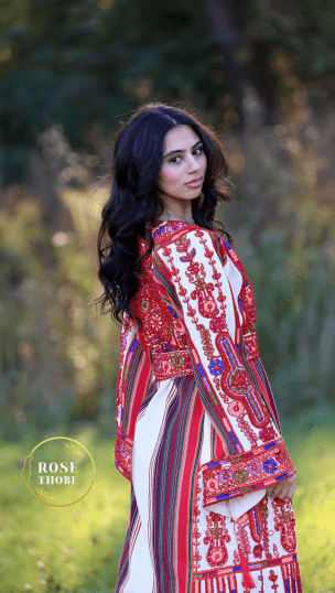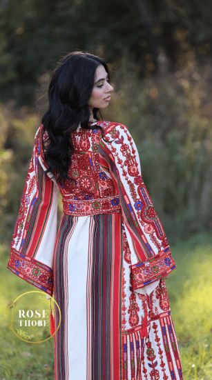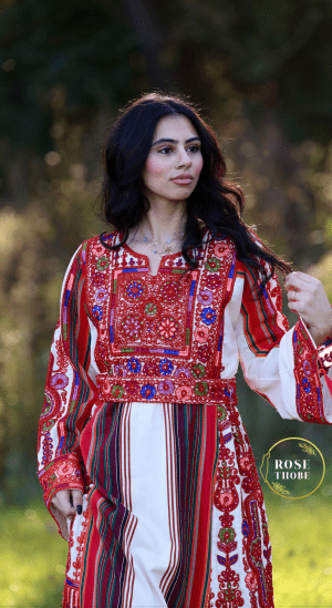 A vision of elegance, this thobe stands out with its stunning soft pink hue—an exclusive shade inspired by the soft, vibrant blossoms of Palestine.